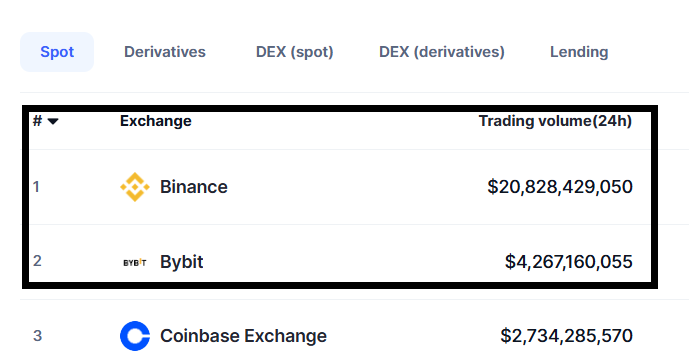 그중에서도 단연 눈에 띄는 곳은 바이낸스(Binance) 입니다. 압도적인 거래량과 점유율을 기록하며 글로벌 1위를 유지하고 있죠. 실제로 순위표를 보면, 현물 거래량은 2위 거래소 대비 약 5배 이상, 선물 거래량 역시 3~4배 이상 차이를 보입니다.