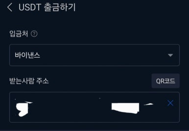 이후 출금 화면에서 입금처를 바이낸스로 선택하고, 앞서 복사해둔 바이낸스 입금 주소를 붙여 넣으면 됩니다.