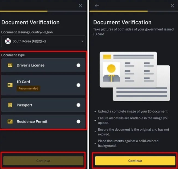 KYC(본인인증) 은 모바일을 통해 진행하는 것이 가장 간편합니다. 안드로이드 스마트폰 사용자는 구글 플레이스토어에서 아이폰 사용자는 앱스토어(App Store) 에서 바이낸스(Binance)’를 검색해 공식 모바일 앱을 설치해주세요.