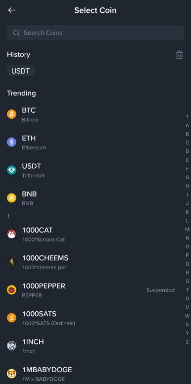 업비트에서 원화로 USDT(테더)를 매수했다면, 이제 이 USDT를 바이낸스로 옮겨야 합니다.