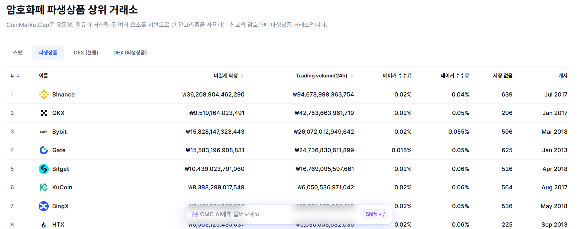 국내 거래소 점유율만 보면 시장 구조가 어느 정도 안정되어 보이지만, 글로벌 기준에서 보면 국내 거래소의 위치는 아직 많이 뒤처져 있는 것이 현실입니다.